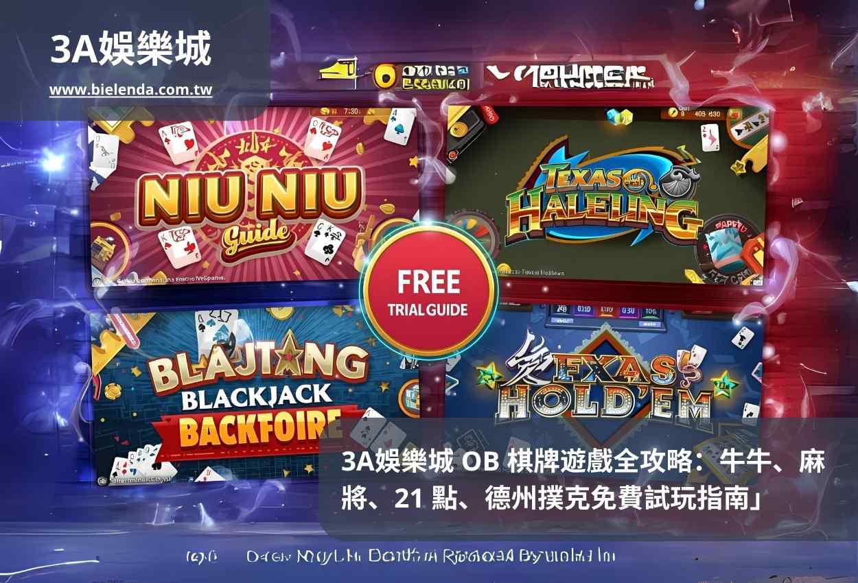 在眾多線上娛樂平台中,「棋牌遊戲」一直是華語玩家的核心喜好之一。3A娛樂城作為一個綜合性平台,其提供的 OB 棋牌遊戲(包括牛牛、麻將、21 點、德州撲克等)更吸引許多玩家免費試玩、熟悉規則後再投入實戰。本篇文章將深入介紹這些棋牌遊戲的玩法規則、試玩方式、策略技巧與風險注意,幫助你在 3a娛樂城評價中更有信心地體驗 OB 棋牌。